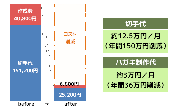 導入前と比較すると年間約186万円のコストを削減することができました。